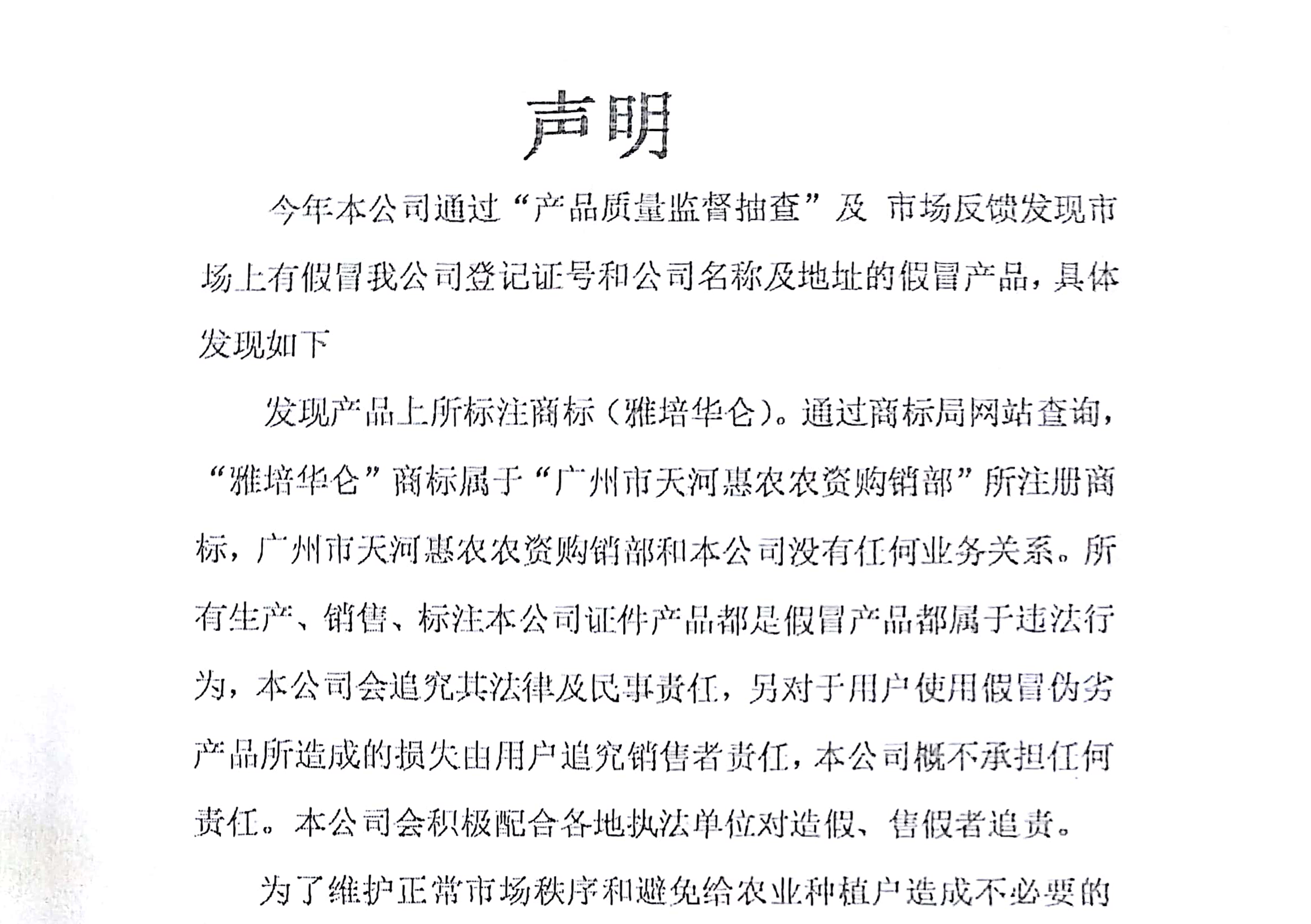 聲明 今年本公司通過”產品質量監(jiān)督抽查”及市場反饋發(fā)現市場上有假冒我公司登記證號和公司名稱及地址的假冒產品,具體發(fā)現如下: 發(fā)現產品上所標注商標(雅培華…